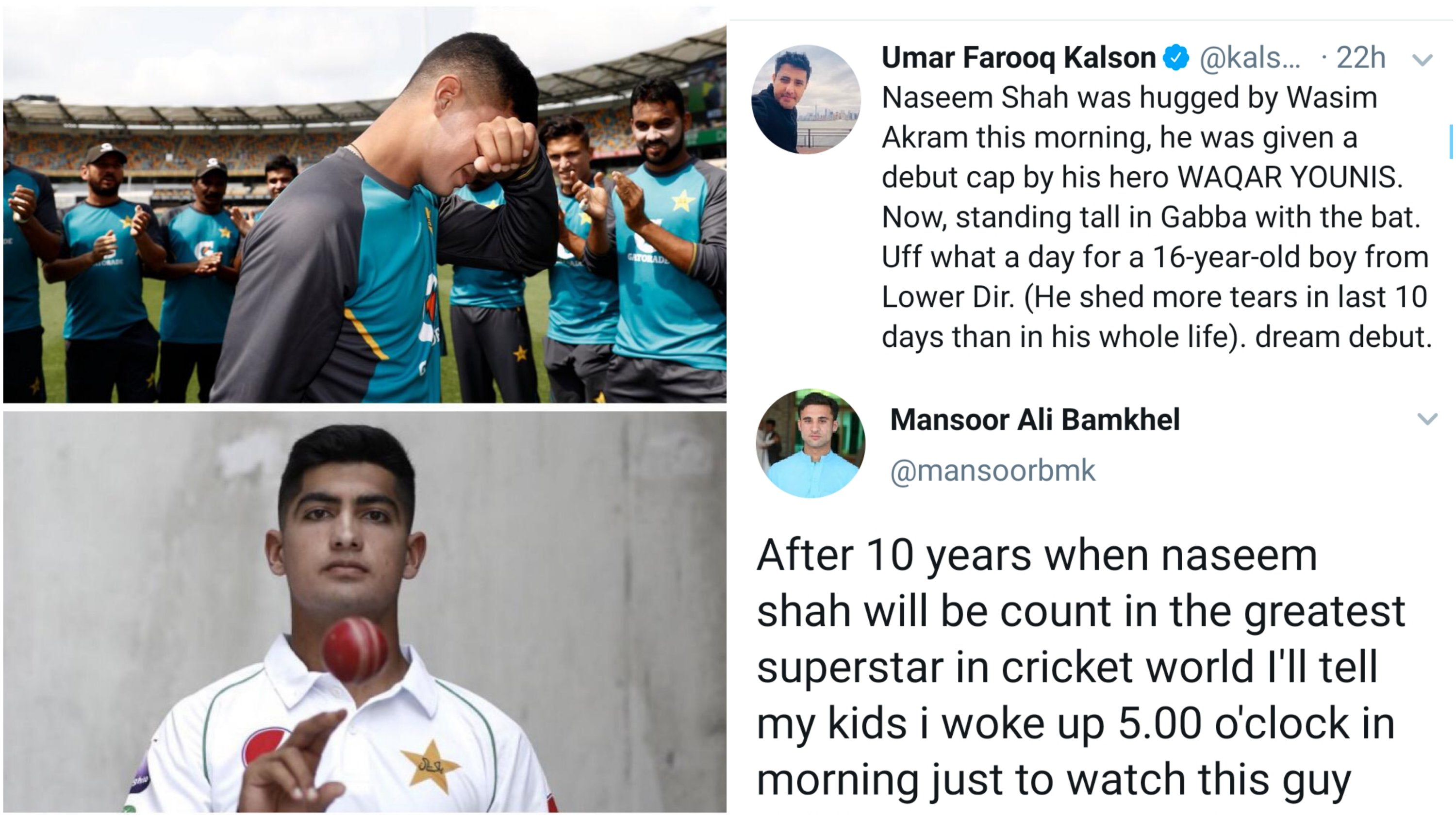 Naseem Shah was hugged by Wasim Akram this morning, he was given a debut cap by his hero WAQAR YOUNIS. Now, standing tall in Gabba with the bat. Uff what a day for a 16-year-old boy from Lower Dir. (He shed more tears in last 10 days than in his whole life). dream debut.