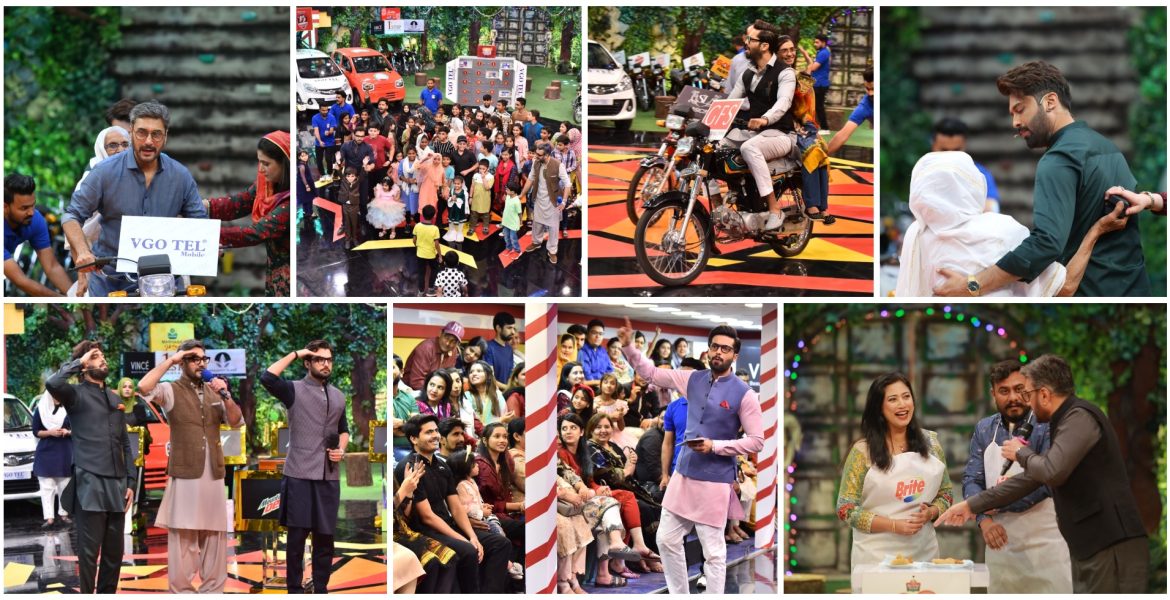 The shows’ formats, amusing twists, and Fahad Mustafa’s charismatic hosting skills keep them all hooked. It encourages the whole family to participate, help each other and take prizes, worth hefty money, home!