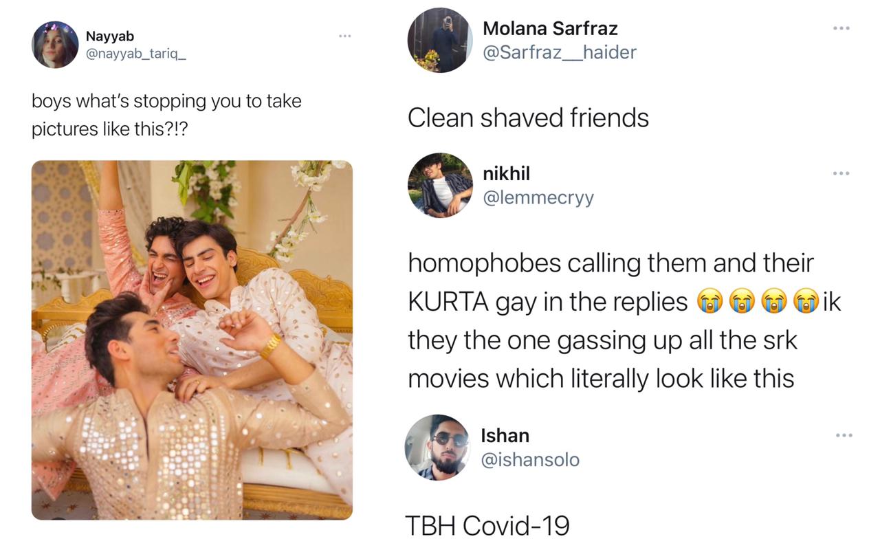 Straight men's fragile masculinity getting triggered by what??? A Kurta? And some of the come back to homophobic replies 🤭. https://t.co/ataJEU47pu