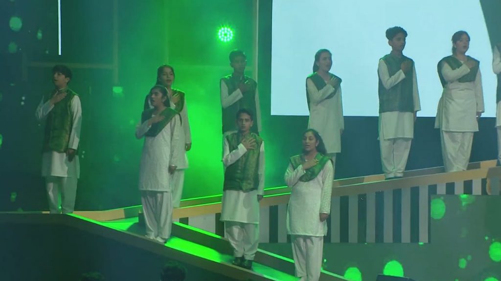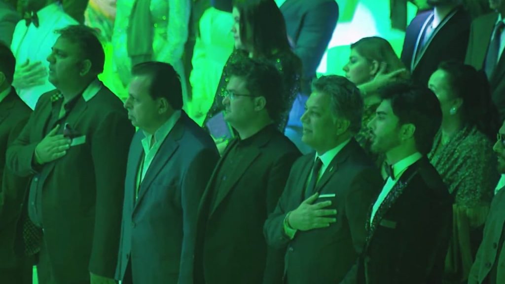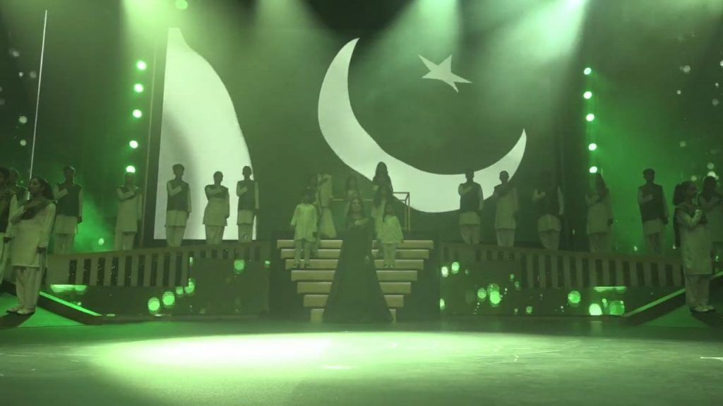 Anticipation peaked as the dimly lit room was showered with green and white lights of our flag. Everyone in attendance, Pakistanis, and Emiratis alike stood together as one to pay their respects in an amazing display of solidarity. The choir behind Sara Khan, adorning national colors, stood with hands over their hearts as they sang our national anthem. A true show of the pride and devotion that we as Pakistanis harbor for our country. As the anthem came to an end, applause reverberated through the room. A change of sound filled the air as the UAE national anthem played with members of the audience singing along. It was a beautiful representation of the unity and brotherhood between the two nations. The Pakistan national flag was also displayed in many other performances during the event to further serve as a symbol of national pride and to promote the spirit of patriotism.
