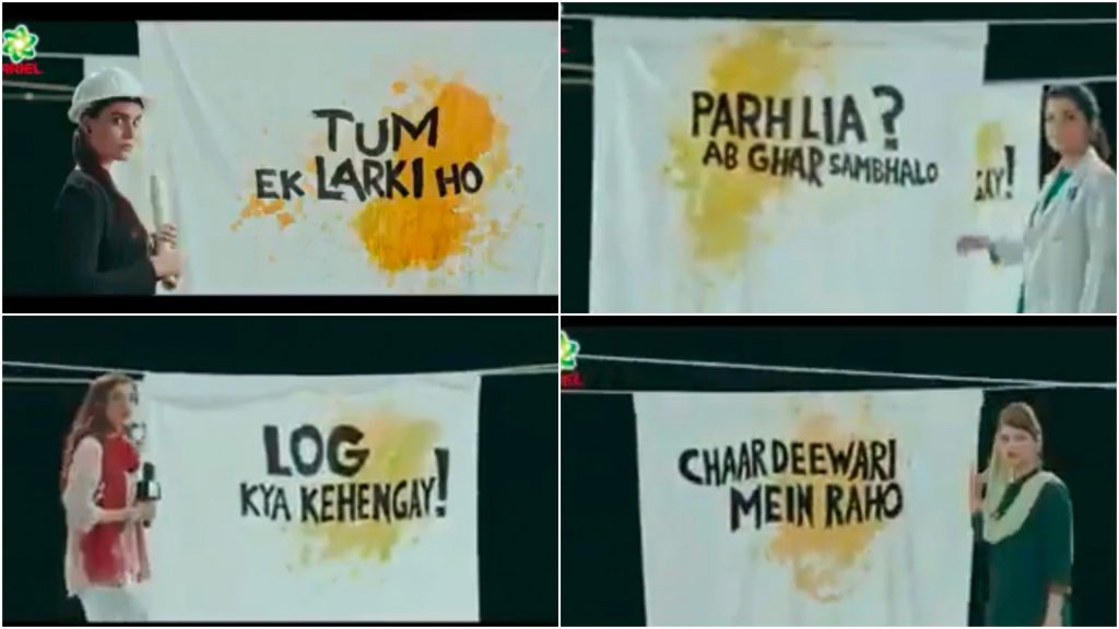 Ariel Pakistan aired their new advertisement a few days ago on television which features phrases like ‘log kya kaheinge,’ ‘parh liya, ab ghar betho,’ and ‘chaar deewari mei raho.’ The ad then shows Pakistan’s cricket team captain Bismah Maroof who continues to say ‘yeh jumlay nahi, daagh hain. Aur yeh daagh humain kya rokeinge?’