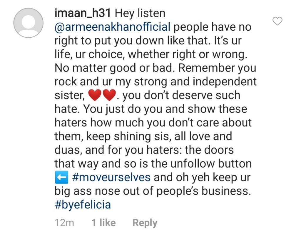 Armeena’s fans too came to her rescue and the comment section was on fireeee!