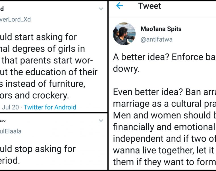 We live in a society where parents save up more for dowry rather than saving up for their girls’ education and its rather unfortunate. In a satirical tweet on having parents invest…