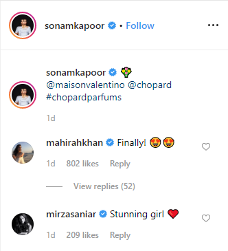 Even Sania Mirza Malik commented on Sonam’s picture!