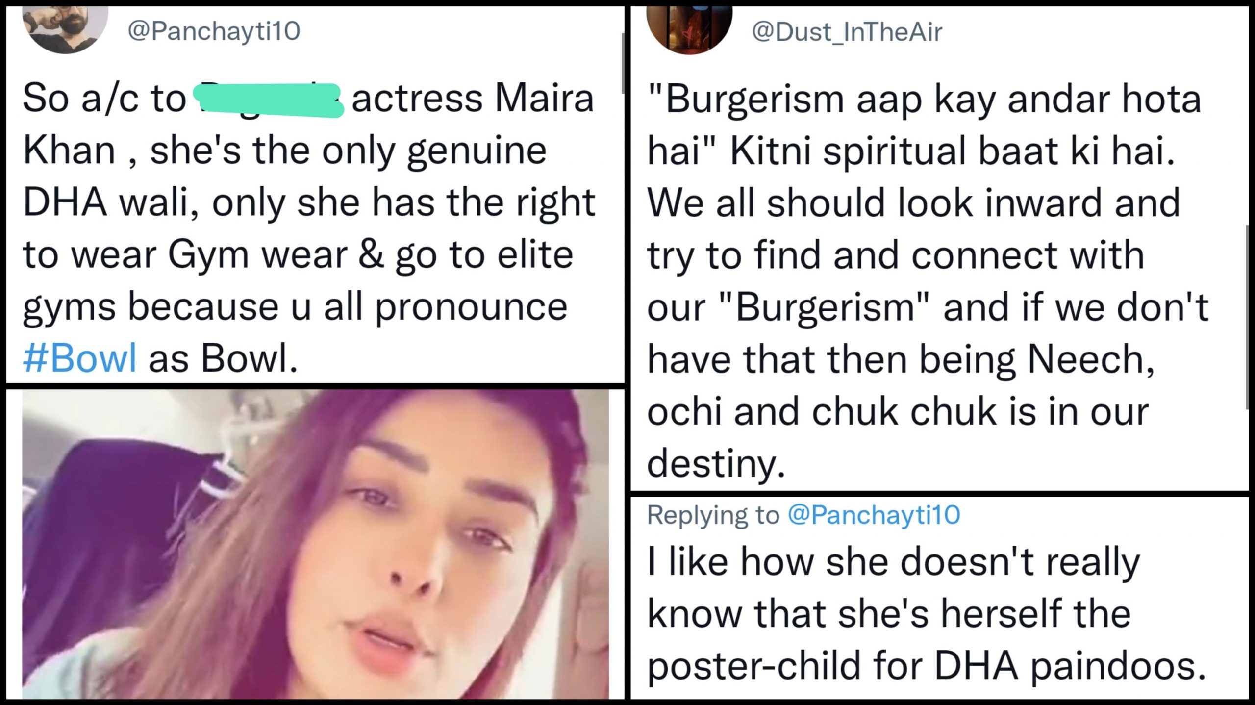 So a/c to B-grade actress Maira Khan , she's the only genuine DHA wali, only she has the right to wear Gym wear & go to elite gyms because u all pronounce #Bowl as Bowl.