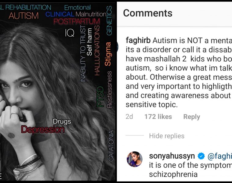 In an attempt to destigmatize mental illness and introduce fans to her new project Saraab, Sonya Hussyn found herself under fire for mentioning autism in the list of mental illness: View this…