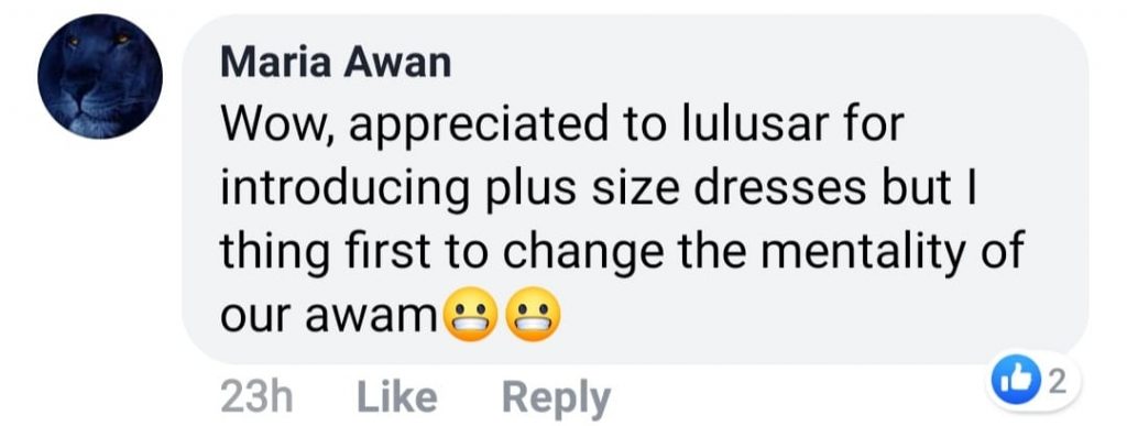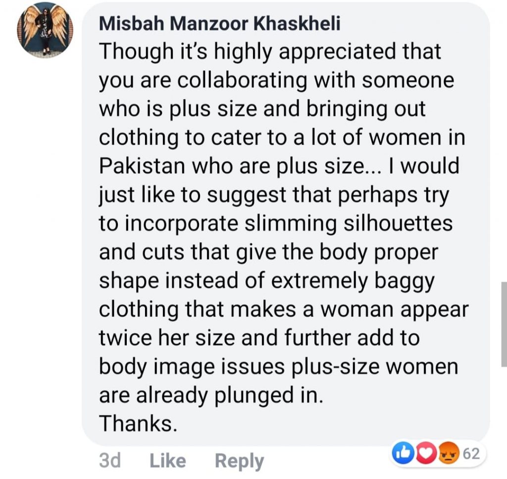Exactly, i think this is a great initiative and more Paki brands should do that as a fat girl i always feel this whenever i search for dresses there are no paki dresses for a XL size.