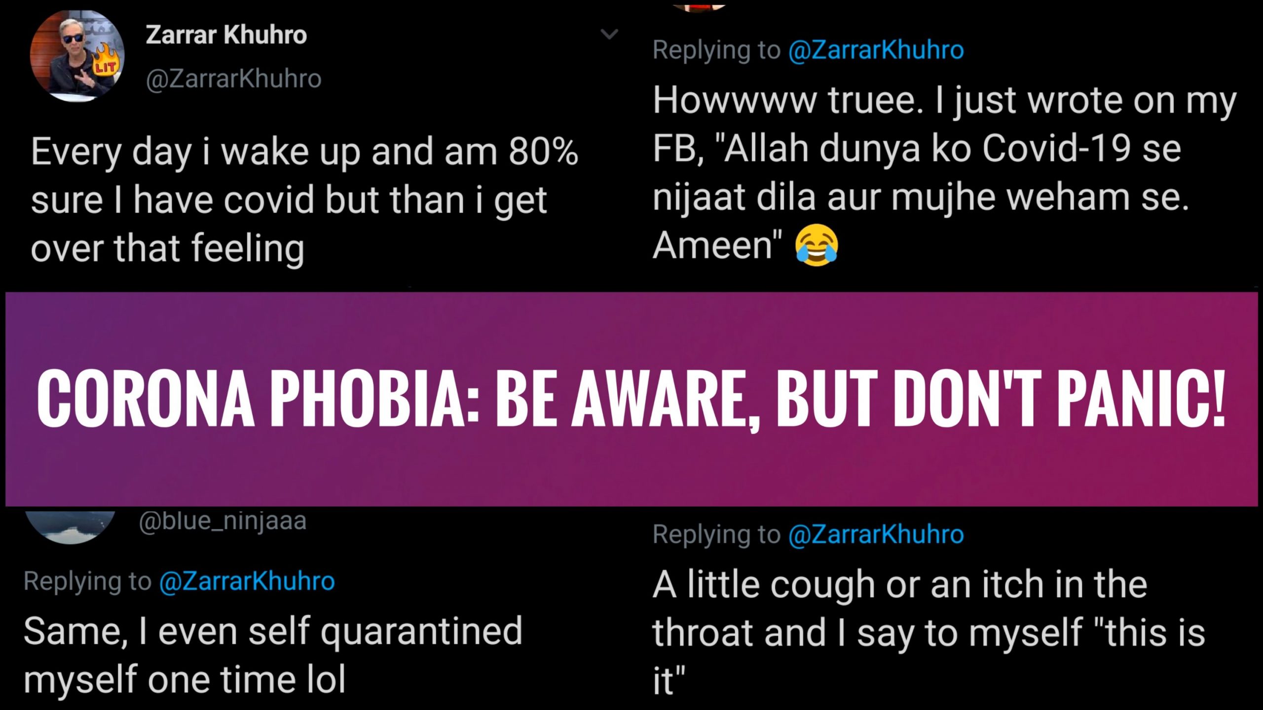 Howwww truee. I just wrote on my FB, "Allah dunya ko Covid-19 se nijaat dila aur mujhe weham se. Ameen" 😂