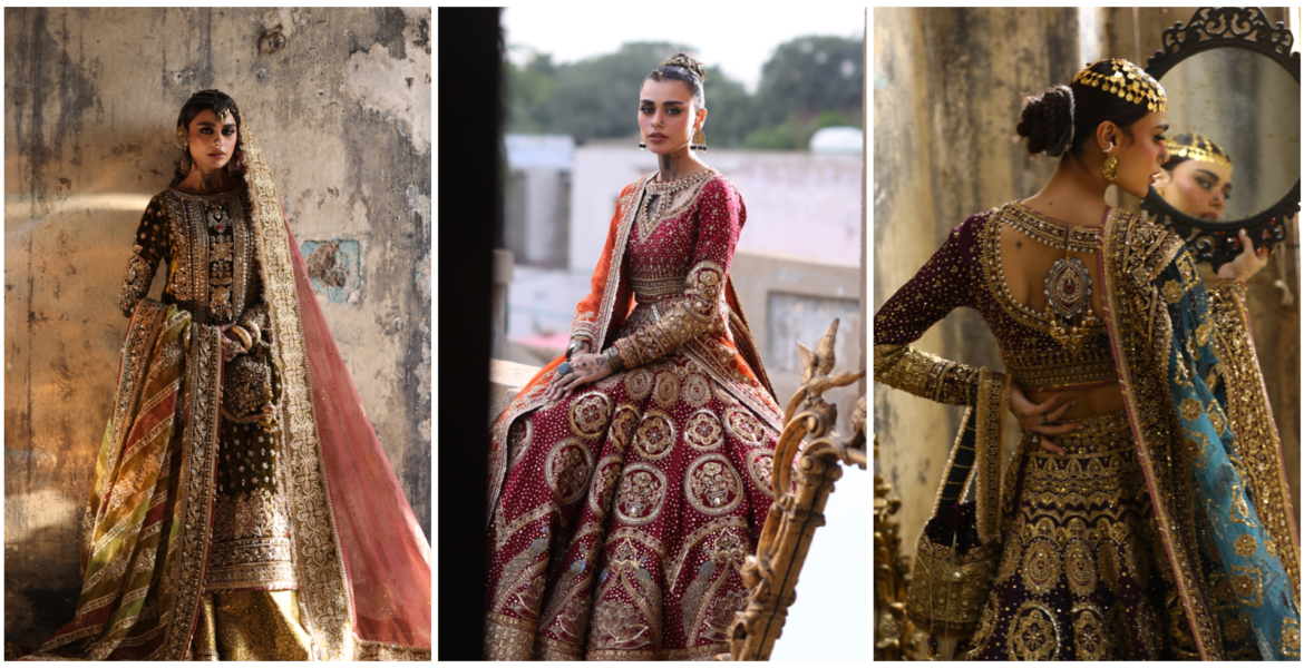 The inspiration came from exploring the old colonial-era buildings scattered throughout Karachi,” Mohsin shared, his voice brimming with enthusiasm. “Karachi itself is a melting pot, with people from all over Pakistan coming to live and earn their livelihood here, creating a rich and diverse cultural tapestry. This diversity inspired us to incorporate elements like traditional face tattoos from Sindh into our designs, blending the old with the new in a way that speaks to the modern bride.”