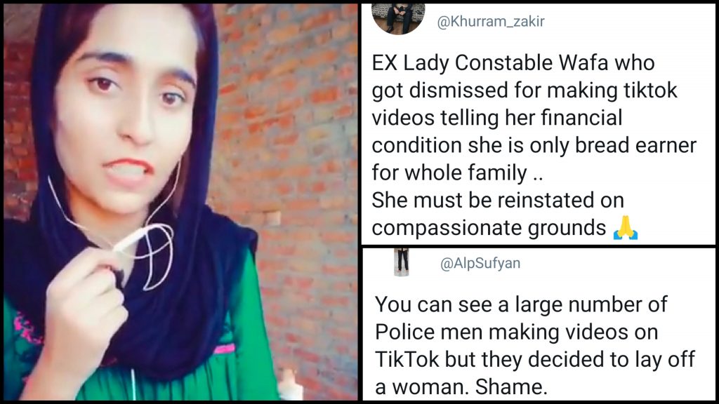 A few days back on 11th July 2020, Constable Wafa from Punjab was fired for making a Tiktok video in uniform without any prior warning. Being the sole breadwinner of her family, Wafa shared a heart breaking video asking the officials to reconsider their decision: