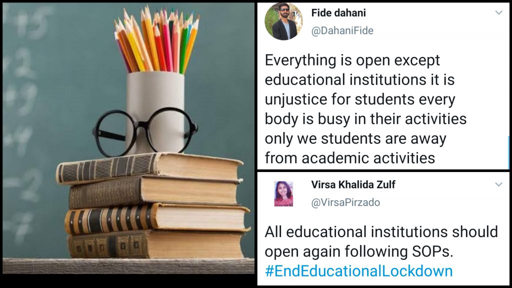 Many of students face serious issues like loadshedding, Internet connectivity and congested space at home so state must reopen educational institution.#EndEducationalLockdown— Ambreen Raza🌻 (@AmbreenRaza110) August 4, 2020
