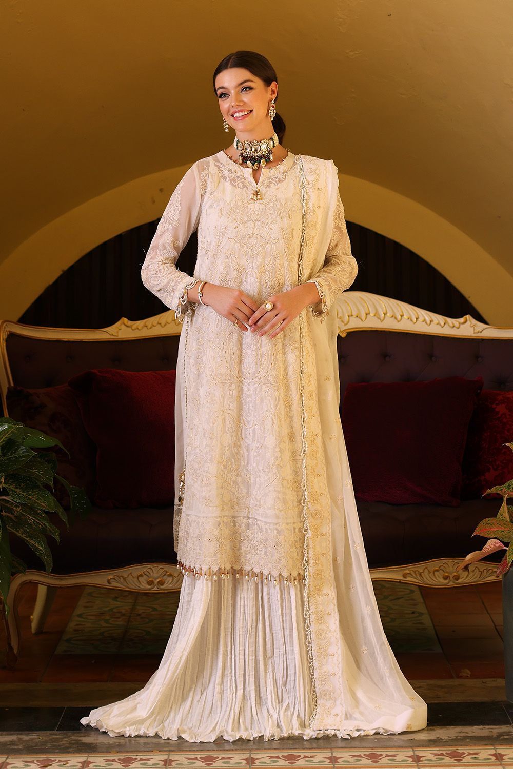 4. Embroidered Chiffon Unstitched Suit (LE-42017): Make a statement with this off-white stunning embroidered chiffon suit. The intricate detailing and chiffon dupatta exude elegance and grace, perfect for evening events and formal gatherings.