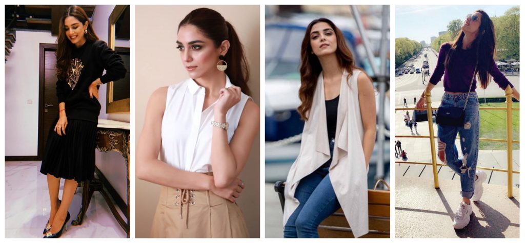 An actress whose street-style chich ensembles we can never get tired of, Maya Ali is a killer in the contemporary fashion department! Her looks can go from a simple black tee and jeans to a sleek knee-length dress, and she’d own up to it like anything!