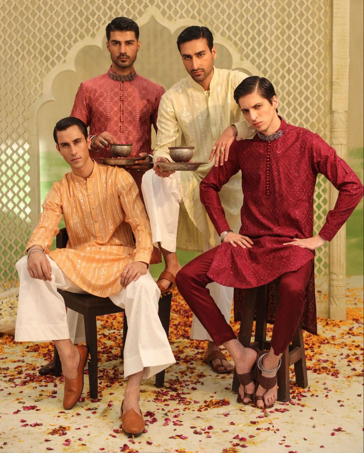 And then to finish it off is Nasheman which effortlessly brings the introduction to the modern cut kurta’s with slits. With a color palette that has classic colors with a splash of purple and burnt orange, Nasheman is for the man who believes in trying something different and adapting it into his style file.