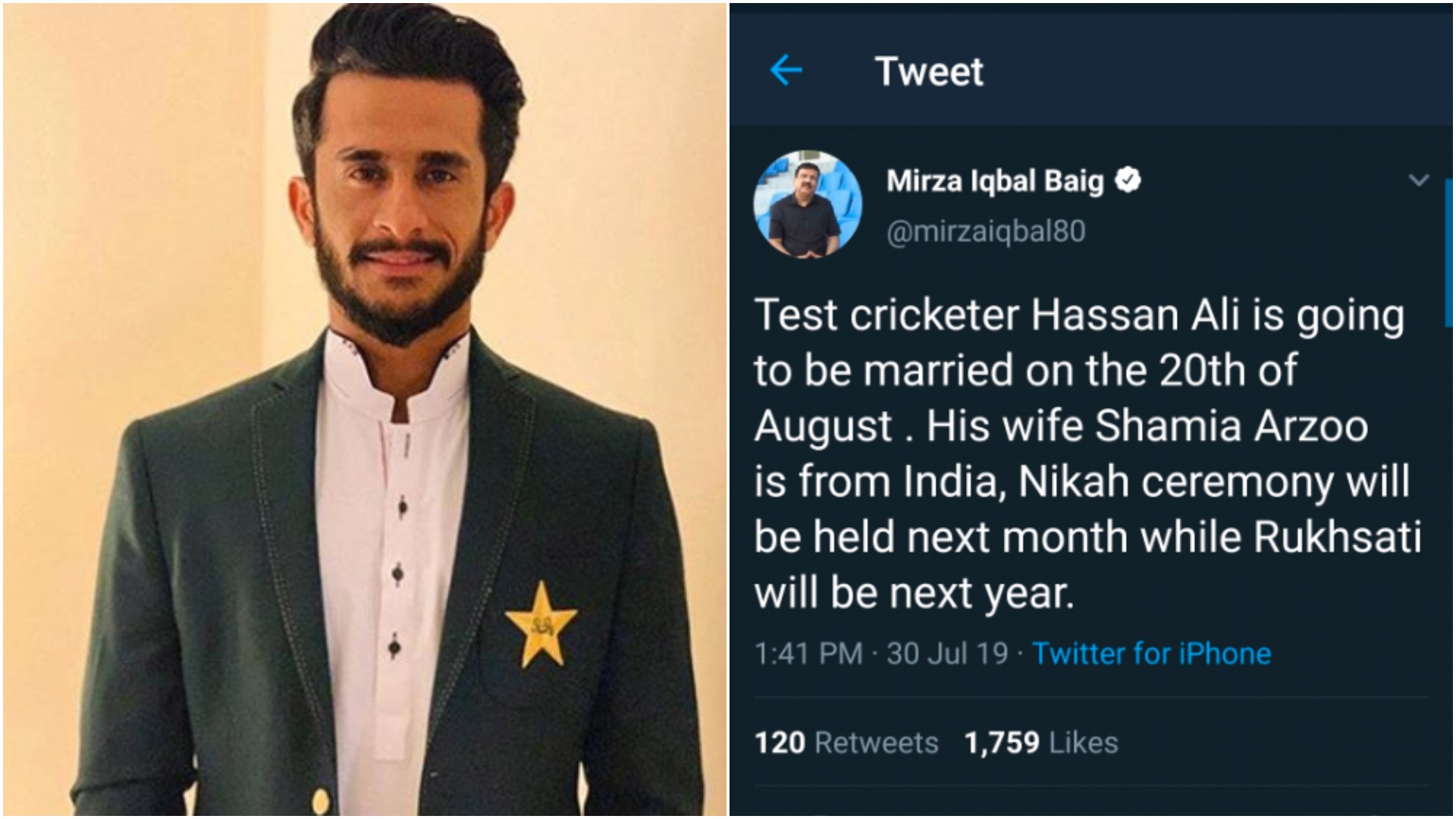 Hasan Ali getting married to Indian girl.#hasanali pic.twitter.com/ApKmATTNK3