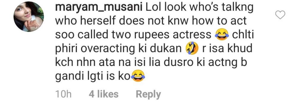 Hina Altaf who herself is an average actress commenting on Muneeb Butt's acting..irony!