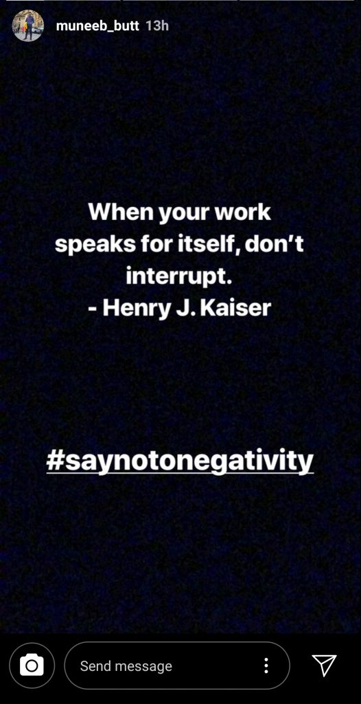 As the clip surfaced the internet, Muneeb Butt took to his Instagram stories to share a quote with the hastag ‘Say No To Negativity’