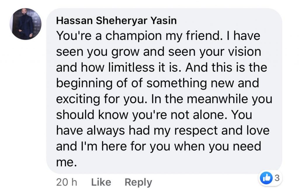 The same sentiment was felt around the industry as accessories designer, Shafaq Habib, and fellow friend and designer Fahad Yaqoob also spoke of support.