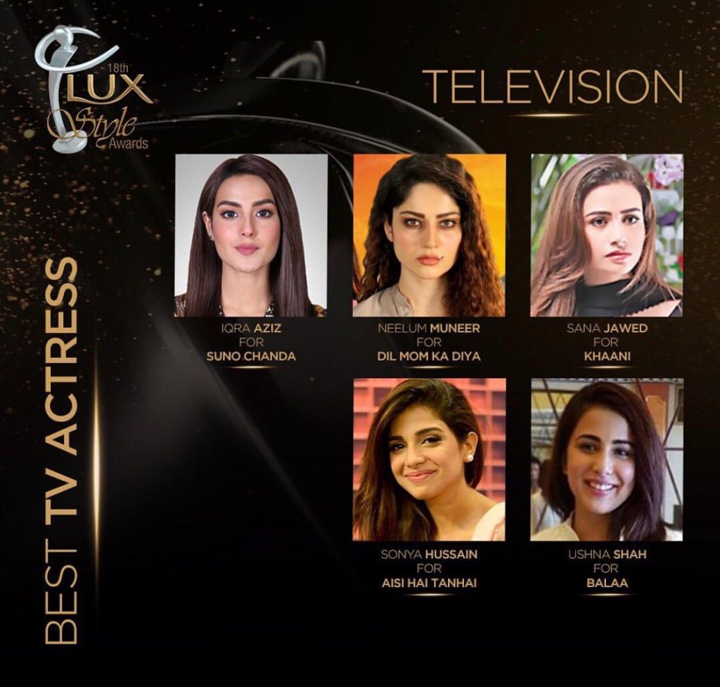 This category at the Lux Style Awards brings forth the names of those TV actors who managed to not only make fans go ga-ga over their acting skills on the small screen but also proved that they could justice to their roles. There’s Bilal Abbas Khan for Balaa, where his role as the homely Taimur brought him to the limelight, Feroze Khan who stole the show with his acting skills, Nauman Ejaz, who gave us shudders with his role as a sexual abuser, Qavi Khan, who ruled his scenes in Aangan, and Sami Khan, where he made an intense love story look great.