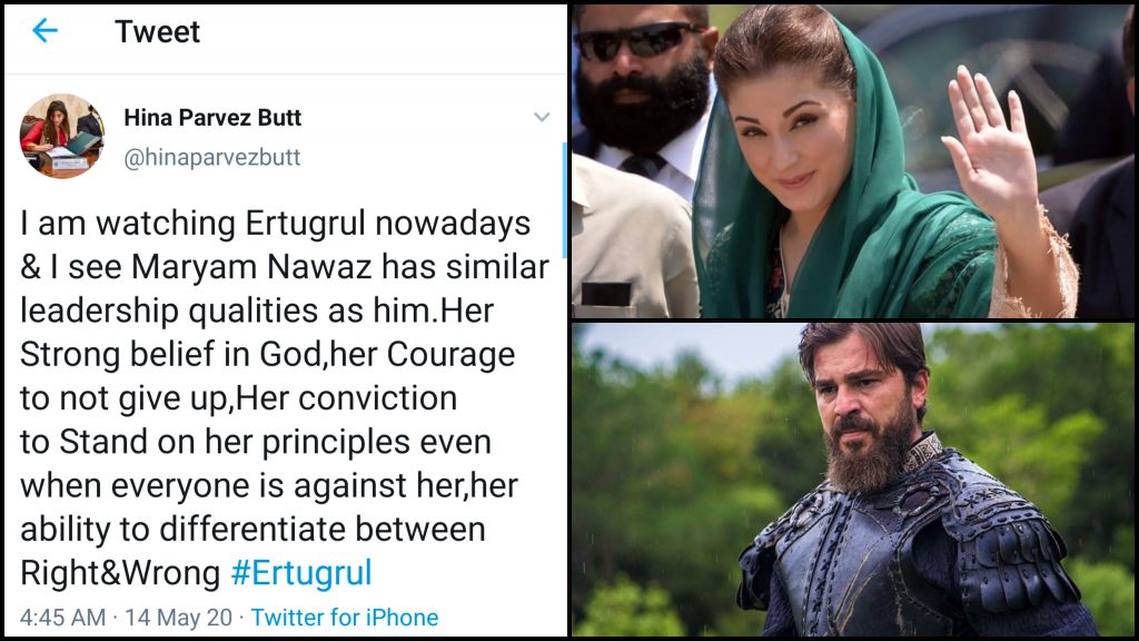 Jumping on to the Ertugrul bandwagon, MPA Hina Parvez Butt shared how she finds Maryam Nawaz to be exactly like Erutgrul in terms of leadership qualities: