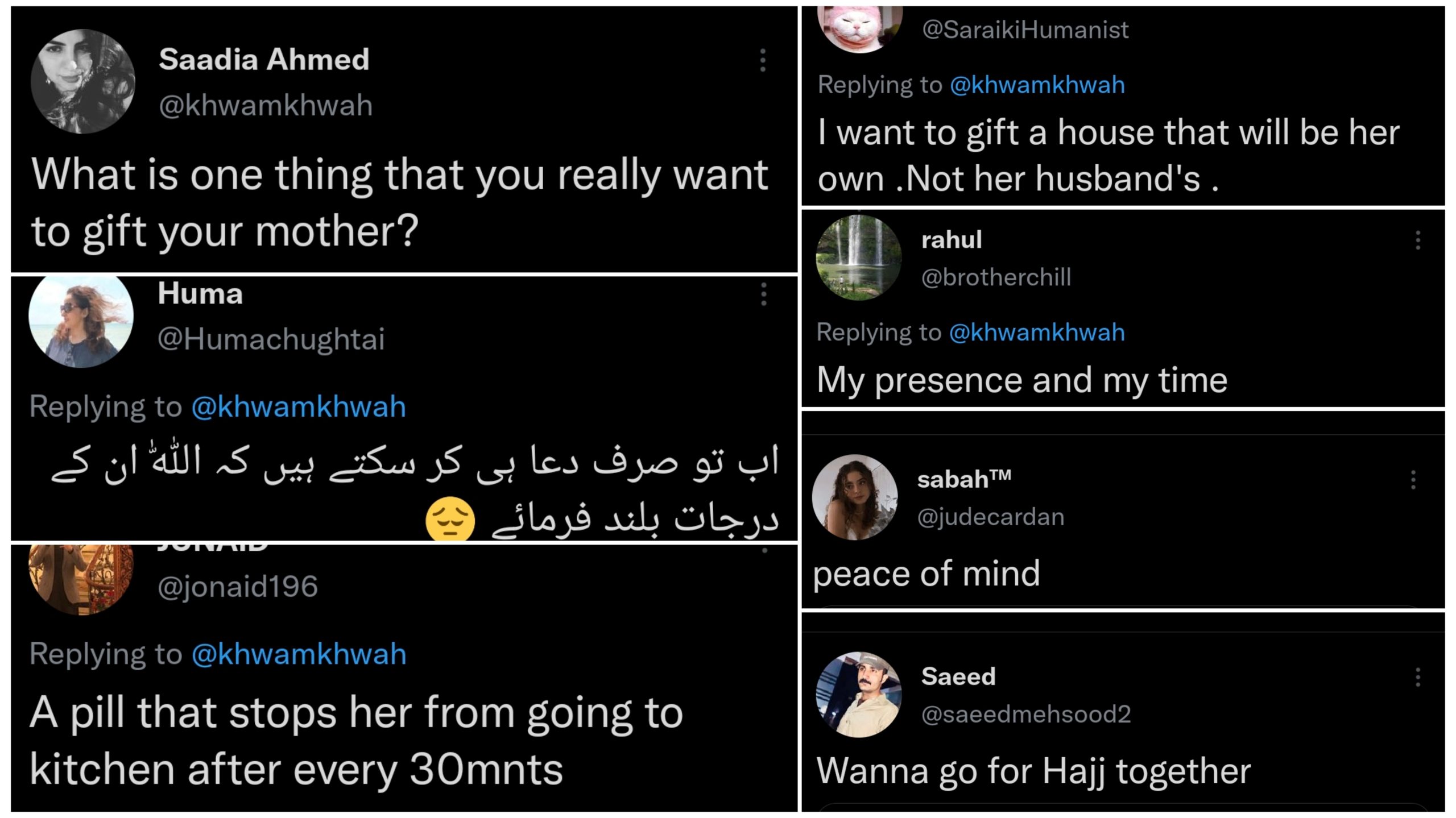 When it comes to our parents and the love we have for them, we literally want to give them everything we possibly can, especially our mothers, who throughout their lives sacrifice their needs to fulfill ours – they’re just too precious! And talking about gifting, someone on Twitter asked Pakistani what they’d want to gift to their mother: