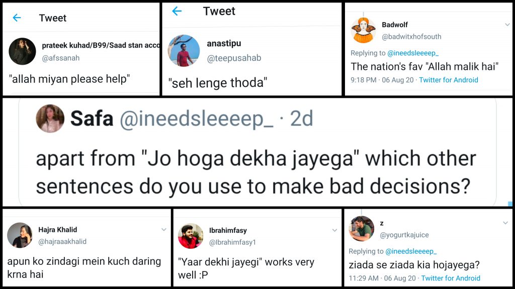 apart from "Jo hoga dekha jayega" which other sentences do you use to make bad decisions?