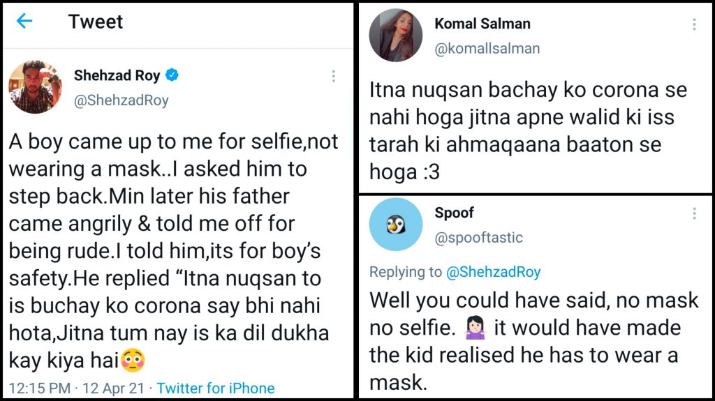 In his own words Shehzad Roy explained the situation on twitter and also clarified that the fan’s father himself wasn’t wearing a mask, and the netizens are by his side!