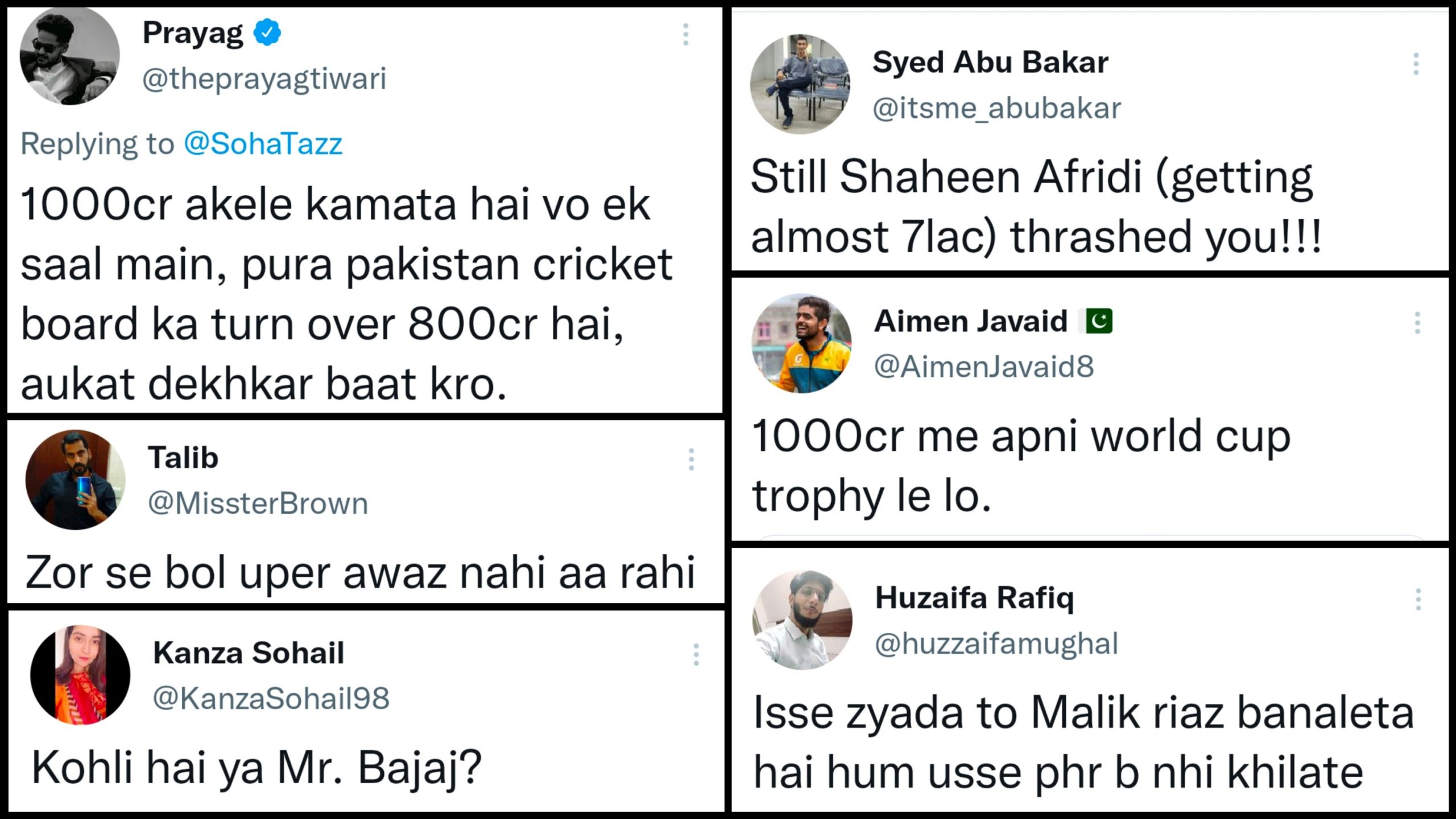 Still bitter after their team’s underwhelming performance in the T20 World Cup, an Indian who got into an argument with a Pakistani claimed that Kohli alone makes 1000 crore while PCB collectively makes 800 crore.