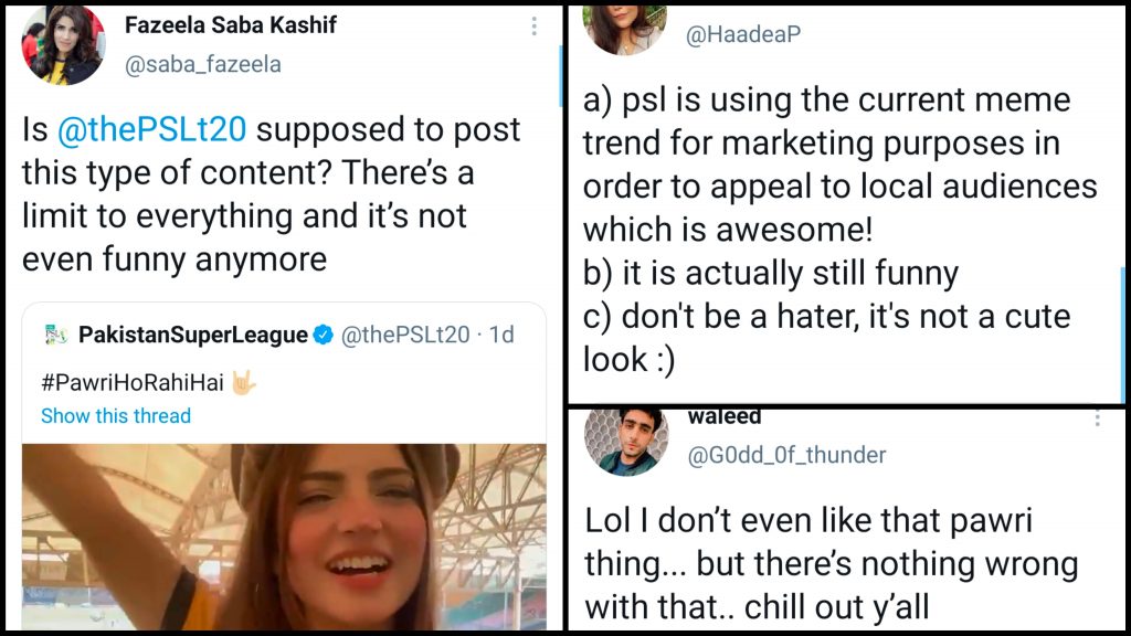 People who weren’t fans of the pawri meme found nothing wrong with PSL account posting the video: