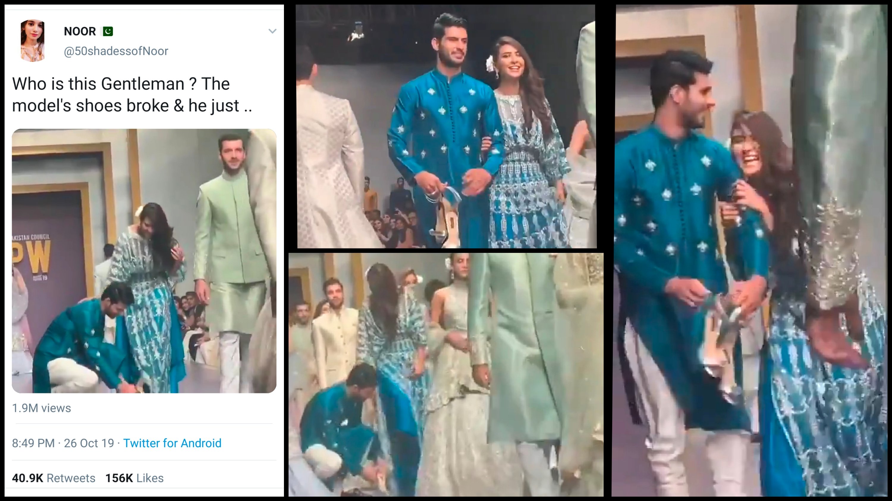 Who is this Gentleman ? The model's shoes broke & he just .. pic.twitter.com/SvOsWnE7F4