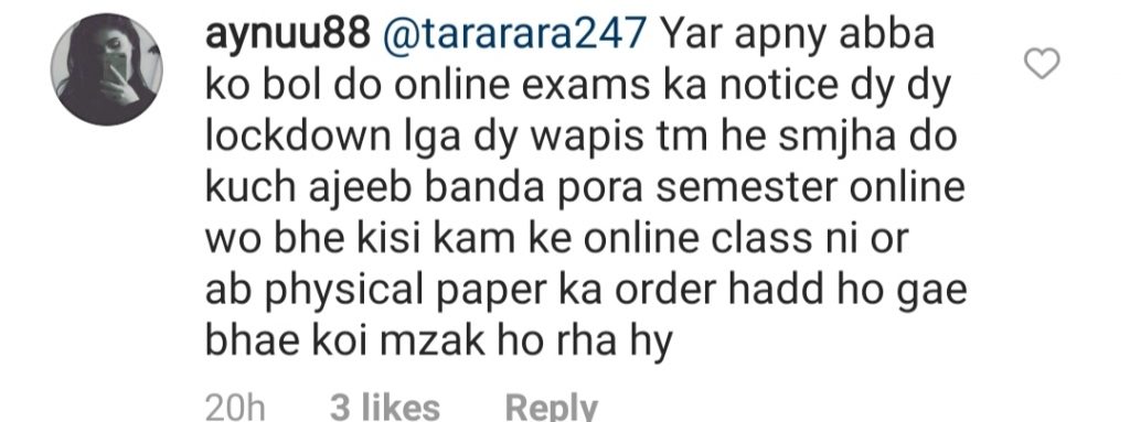 When they saw that their hashtags made no difference to his decision they turned Tara Mahmood’s comment section into a plea-ground asking her to convince her dad to close the educational institutes: