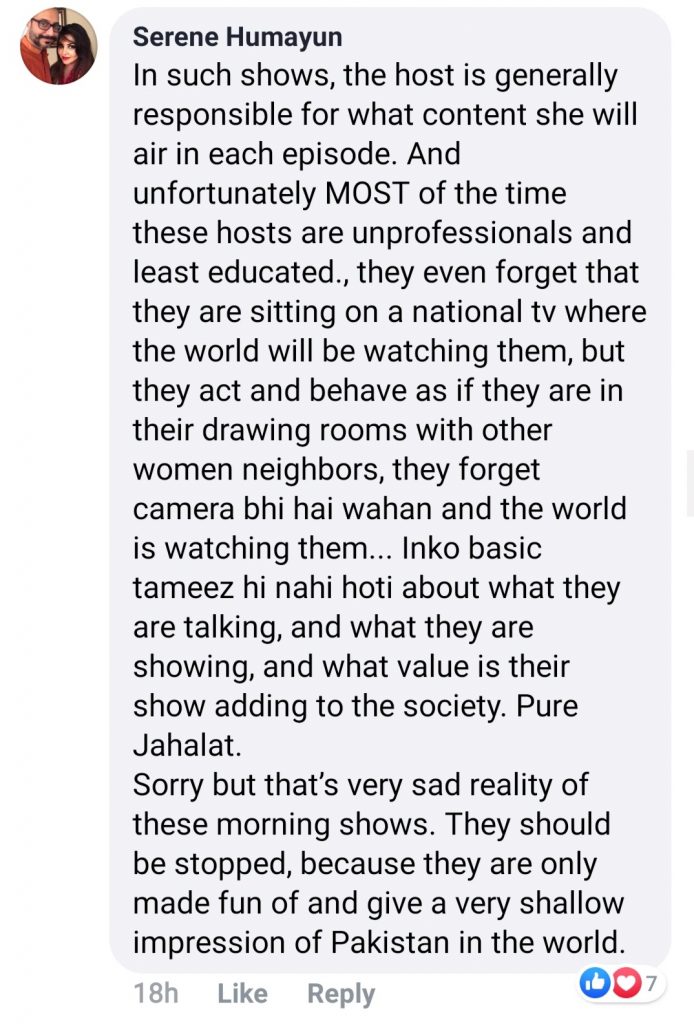 We all feel very differently about the various morning shows being telecast by different channels. Some hate it with a passion, some love watching them and some don’t even know that they exist. Known for her questionable content, Nida Yasir, has been quiet the talk of the town after a clip from her show went viral: