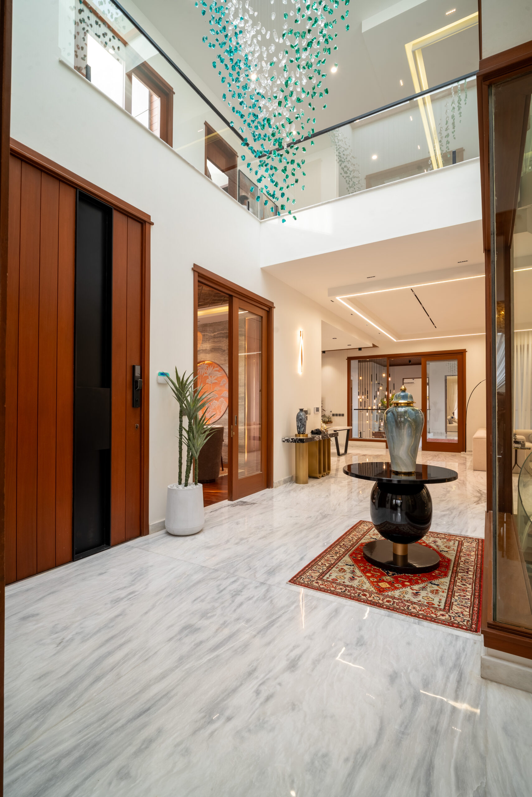 Grand chandeliers placed throughout the house further elevate the design, creating focal points that enhance the architecture.