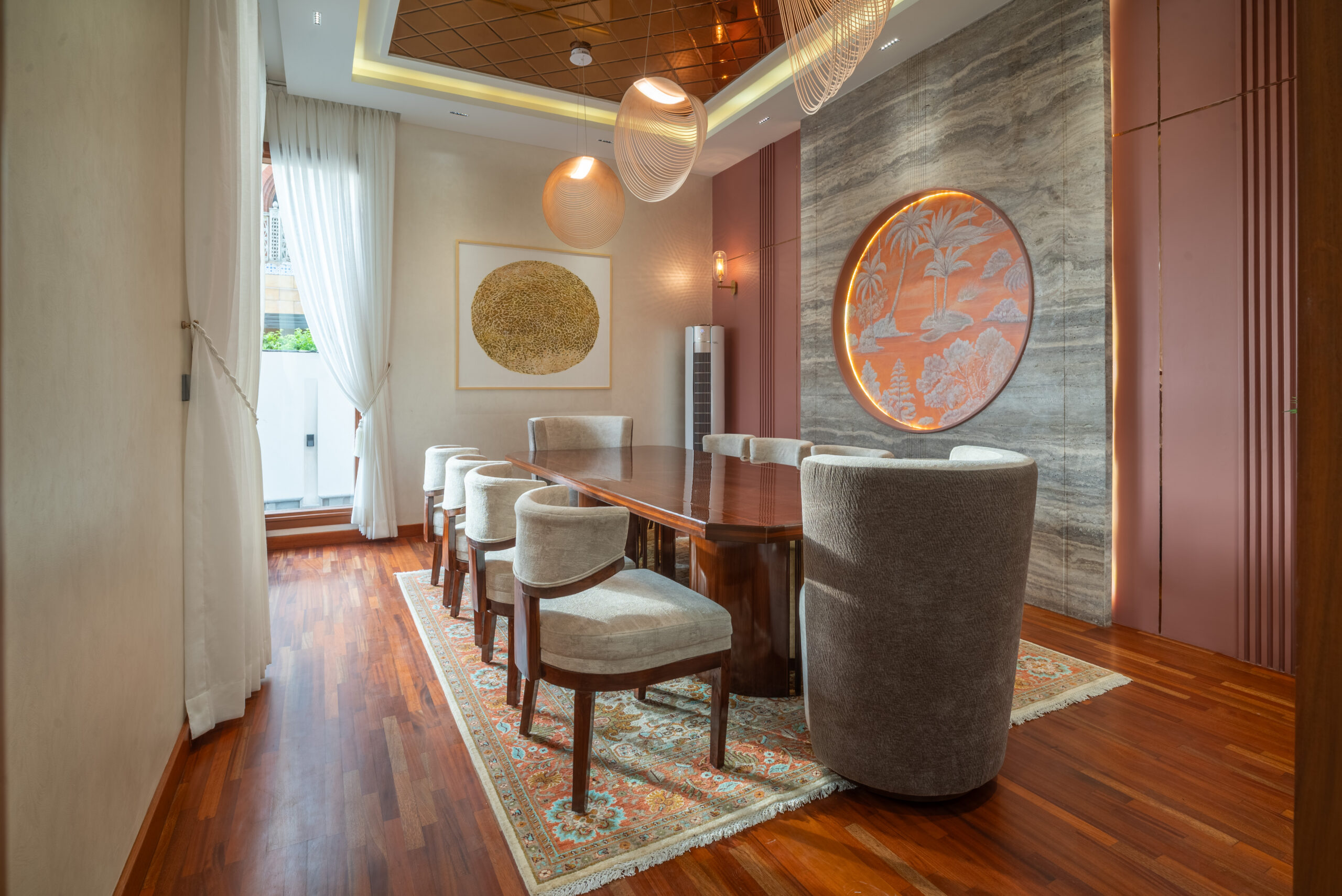 The furniture design and soft furnishings are curated by Palette Studio by Mehreen Sheikh, adding warmth, comfort, and elegance to the overall environment.