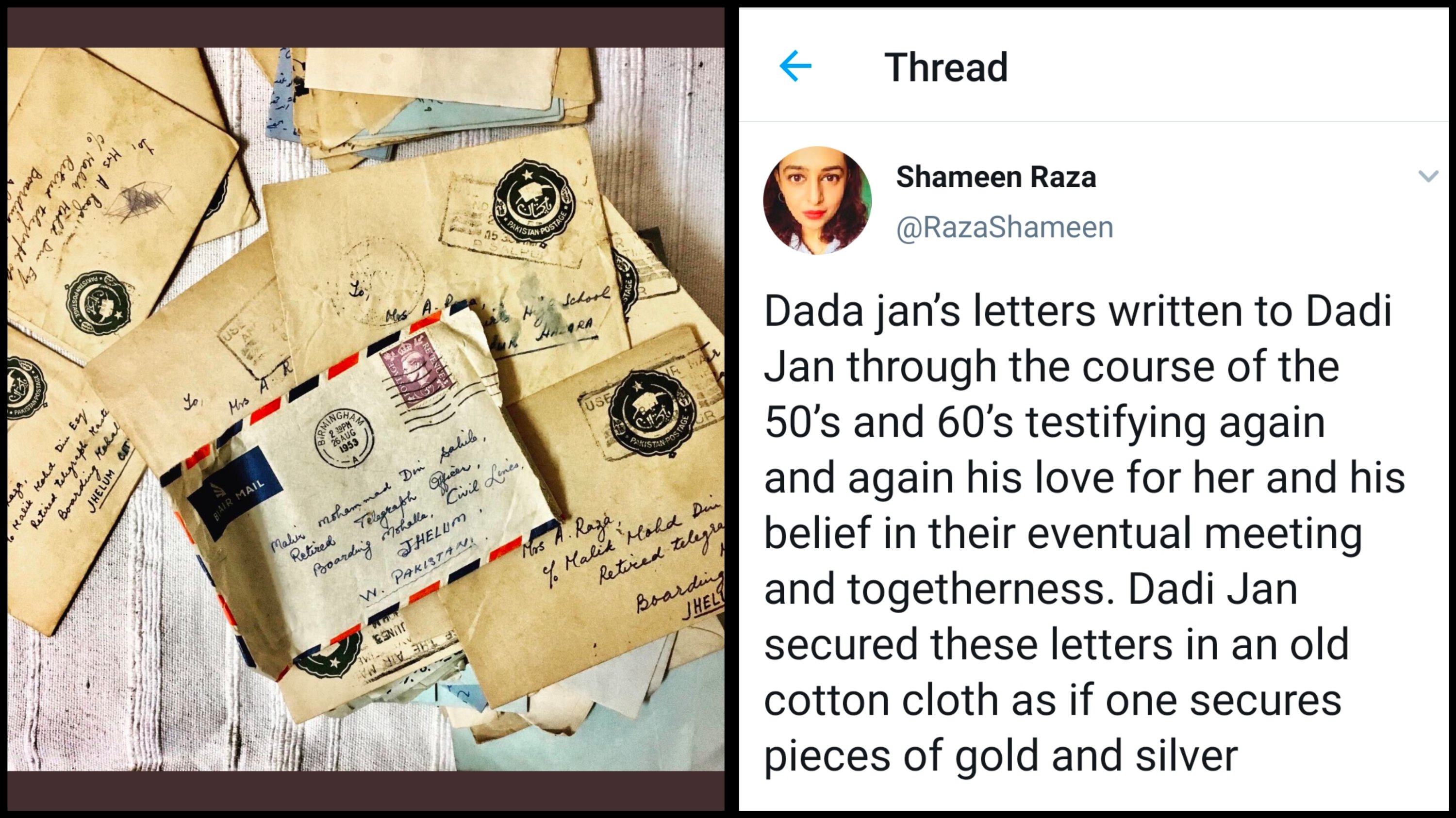 A girl who goes by the name Shameen Raza took to Twitter to share her dadi’s most prized possession – the letters here dada had written to her expressing his love for her and she deems these letters as timeless: