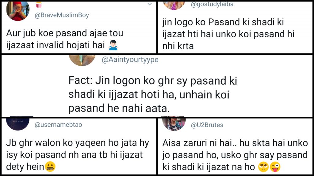 And while we’re at it, a girl on Twitter has half the people relating big time to being permitted a pasand ki shadi but not finding anyone of their pasand: