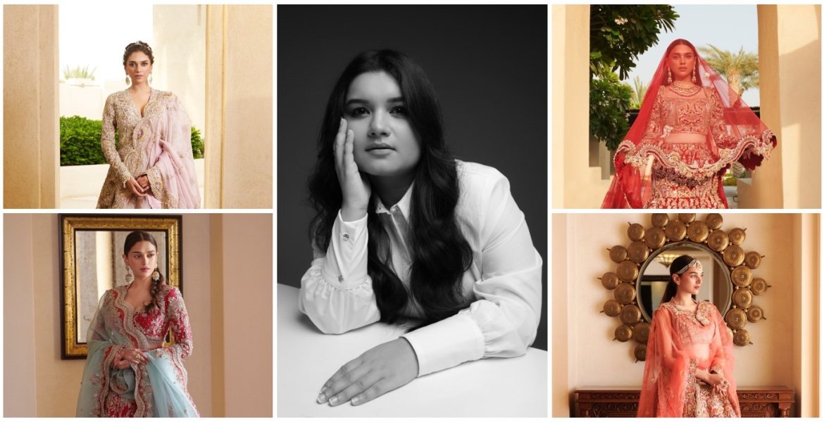 Raya for example, showcases a variety of dori, tila, and sequin which accounted for over hundreds of hours of diligent artistry, whereas Vasl, explores shades of magenta pink with three-dimensional floral encrusts, which gloriously create sartorial geometry.