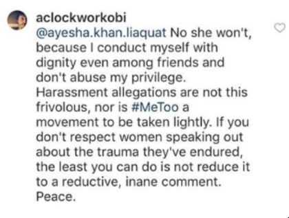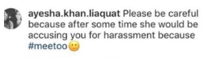 A fan made an inappropriate comment under this picture of Amna Ilyas and Osman Khalid Butt bringing in the #MeToo movement: