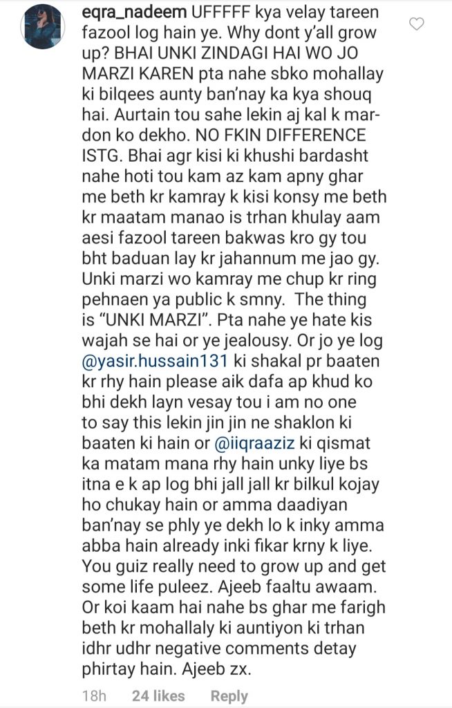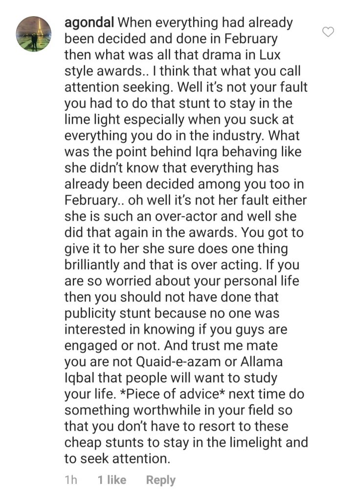 Bloody #AttentionSeekers🤦♂️#IqraAziz #YasirHussain pic.twitter.com/PArfOQ8HwO— Durrani (@iamDurrani1) July 31, 2019
